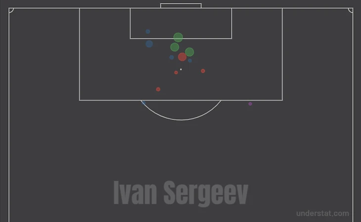 Прошло 10 туров чемпионата России. Кассьерра и Сергеев по 5 раз выходили на поле с первых минут. Со скамейки Матео выходил 5 раз, а Иван – 4. Первый проводит на поле в среднем 49 минут, второй – 46. Только вот Сергеев забил 4 гола и сделал 2 голевые, а у колумбийца всего 0+1. Колумбиец сильно сдал по сравнению с прошлым сезоном? Для начала рассмотрим игру футболистов вне штрафной площади. В пересчёте на 90 минут колумбиец лучше Сергеева по количеству и качеству точных передач как в целом, так и на половине поля соперника. На чужой половине Кассьерра хорошо отклеивается от соперника, находит свободное пространство, получает передачу и отдаёт пас на ход партнёру. По точности передач (86.2%) колумбиец идёт на втором месте среди всех атакующих игроков РПЛ. Иван также может отклеиться, но с приемом и передачей не всё так хорошо, как могло быть. Сергеев реже встречается с мячом и не всегда может сделать точную передачу (68%).