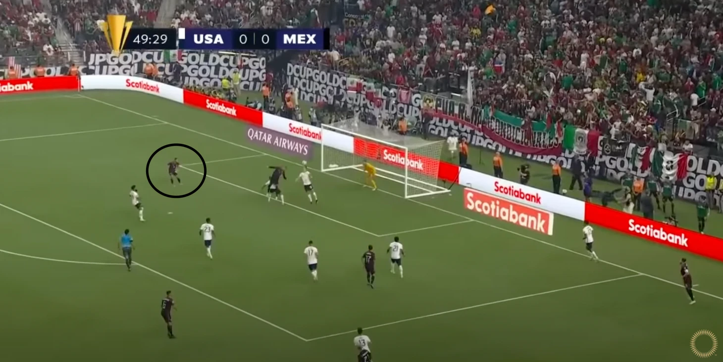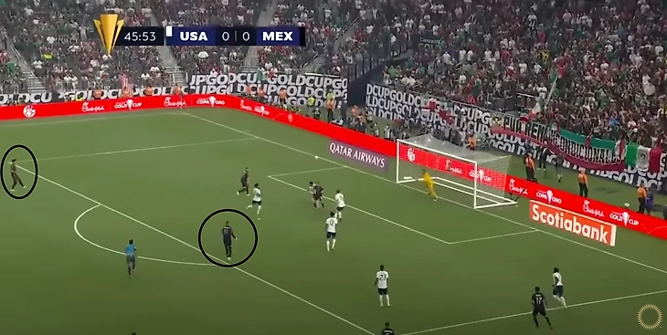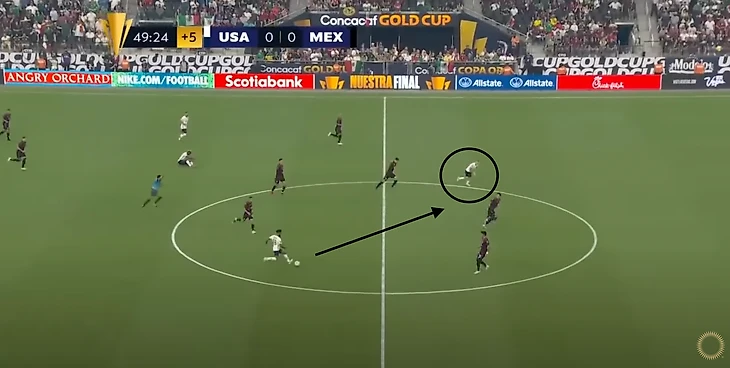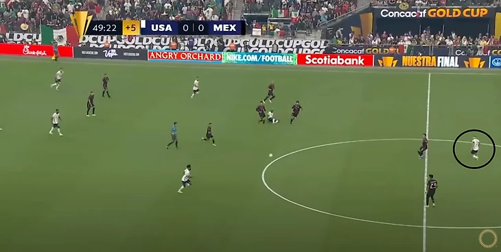 Американцы всегда оставляют одного игрока в центре поля, чтобы использовать его в контратаках, получая неплохие перспективы выхода 1 на 1.