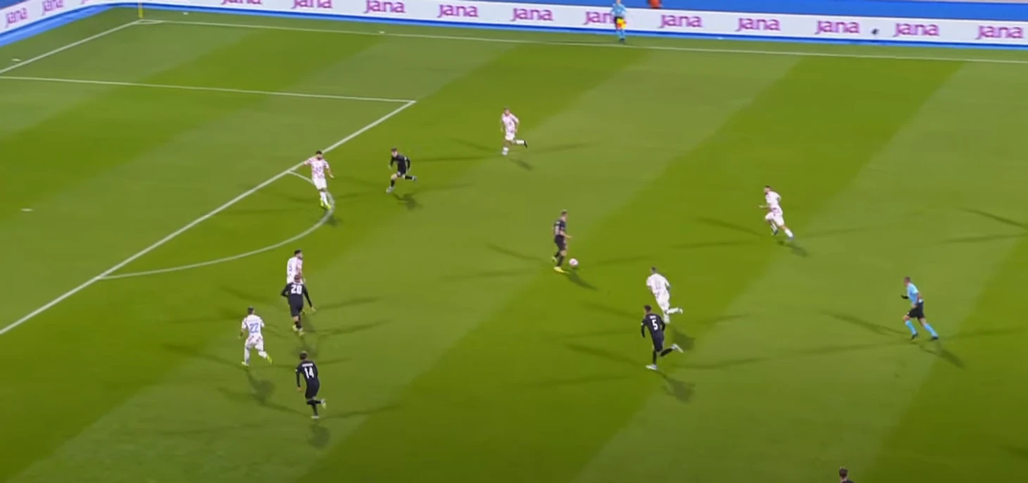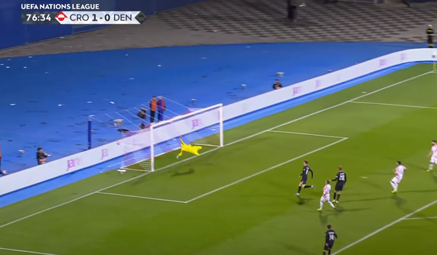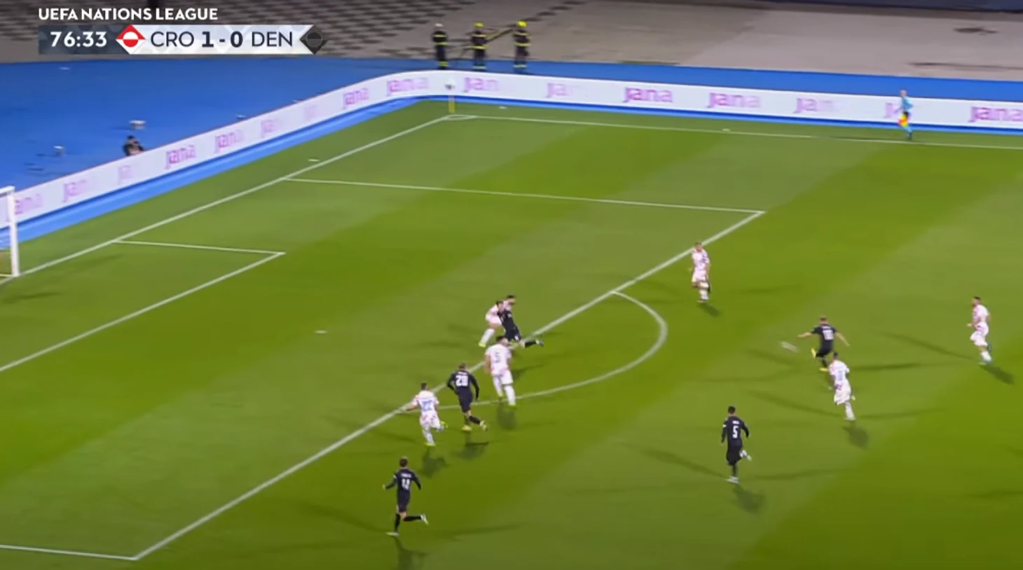 При счете 0:1 в пользу Хорватии Эриксен получил мяч в свободной зоне: