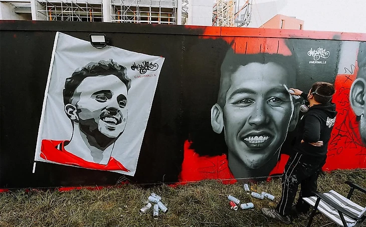 Представители британского уличного искусства Murwalls, которые недавно нарисовали мурал с Юргеном Клоппом, теперь нарисовали легенд «Ливерпуля» и нынешних игроков клуба.