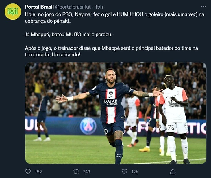 «Неймар унизил вратаря (снова), когда исполнял пенальти. Мбаппе же пробил очень плохо и не реализовал удар. После матча тренер сказал, что Мбаппе будет штатным пенальтистом команды на сезон. Абсурд!»