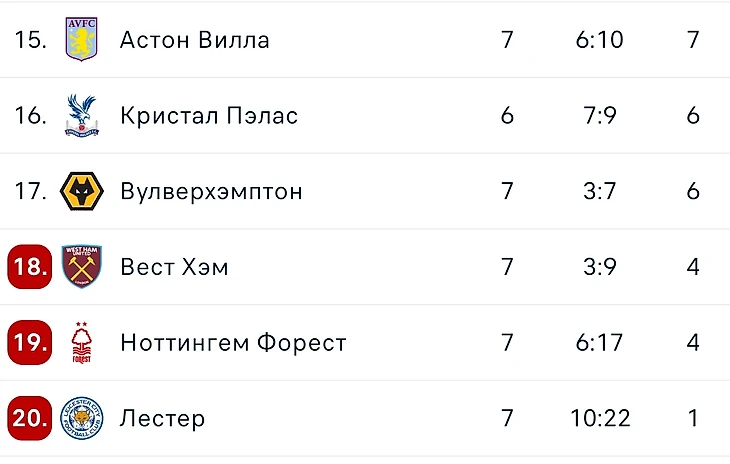Самые неожиданные результаты конечно же в самой конкурентной лиге. Но АПЛ нас приучает к тому, что после каждого тура ситуация кардинально может измениться. Пока пугает только Лестер, который не сделал ни одного трансфера, а с уходом Шмейхеля стал пропускать каждый второй удар в створ. Вест Хэм и Вулверхэмптон приучили нас, как и Лестер, к высоким результатам, но там обратная ситуация: закуплено очень много игроков и теперь надо строить новую команду, что пока сказывается на результатах, так что скорее всего для этих клубов сезон переходной. Ноттингем Форрест на данный момент просто успел познакомить всех игроков друг с другом и какой-то спрос с массовой закупки можно делать только после мундиаля. Ну а позиции Астон Виллы и Кристал Пэлас так вообще не критичны, есть несколько клубов с действительно настоящими проблемами, в то время как Вилла и Пэлас, а точнее их тренеры столкнулись с проблемой второго сезона, которую я думаю и Вчера и Джеррард исправят.