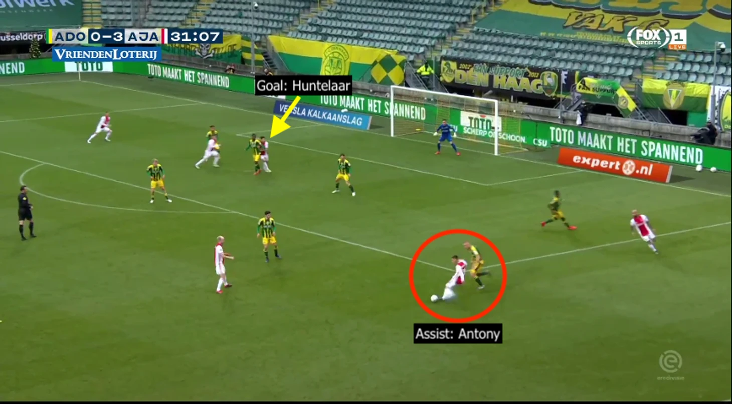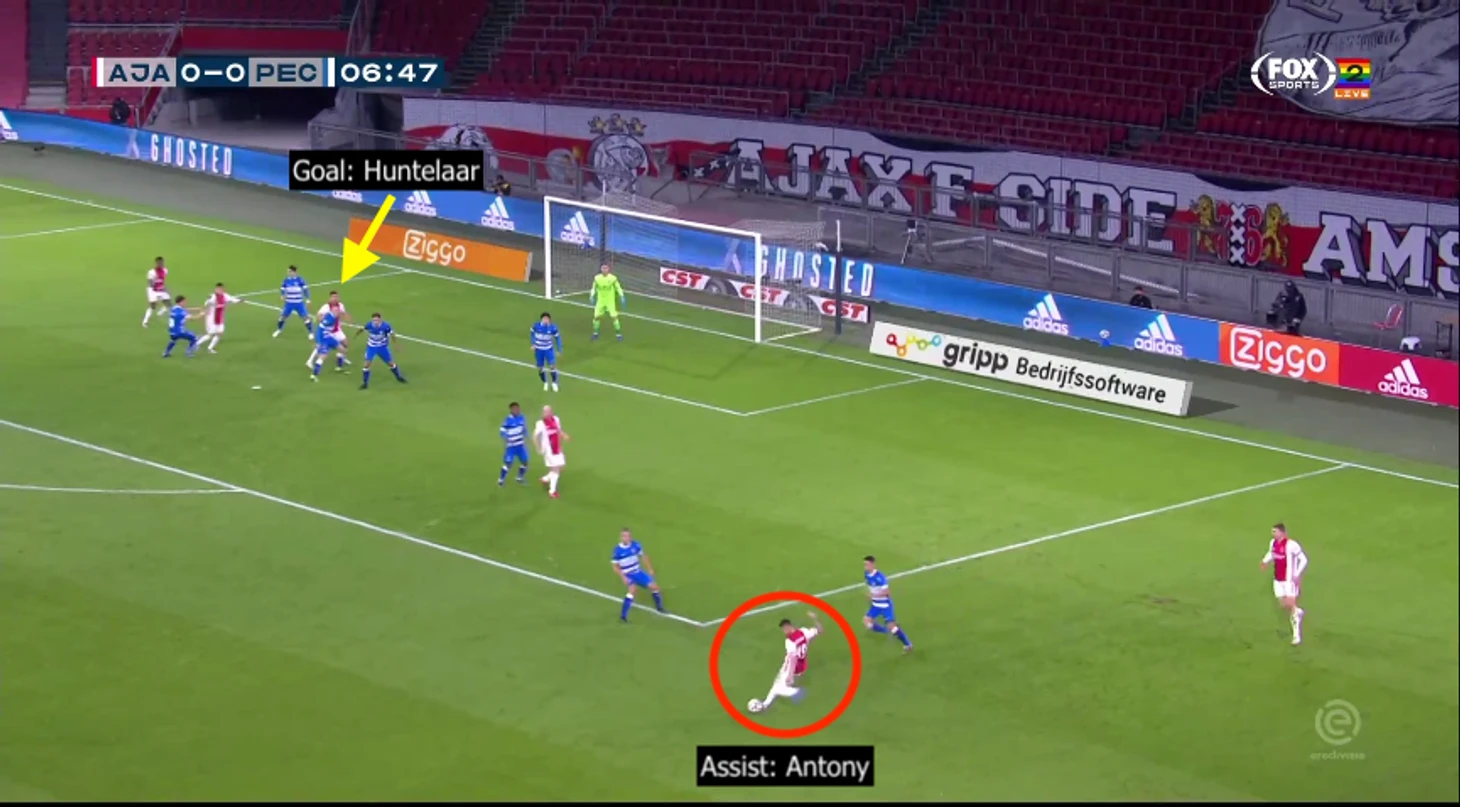 • Мягкий навес на дальнюю штангу. В такие моменты Антони пользуется тем, что соперник боится обыгрыша (не выбрасывается), и вместо попытки дриблинга исполняет подачу в штрафную. Именно так выглядит фирменный ассист Антони: