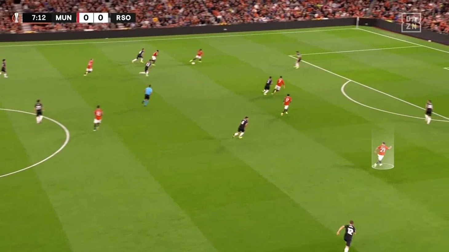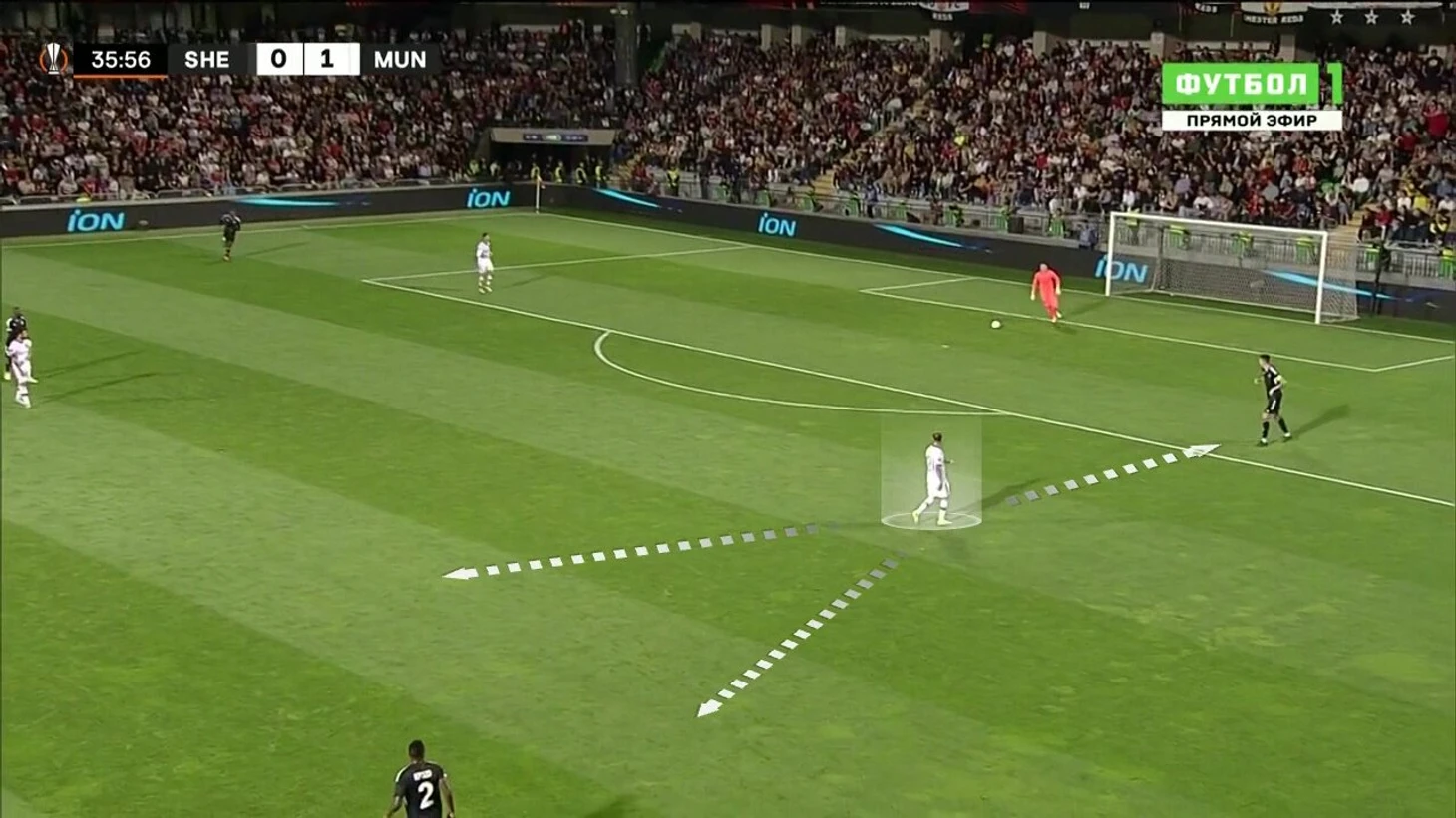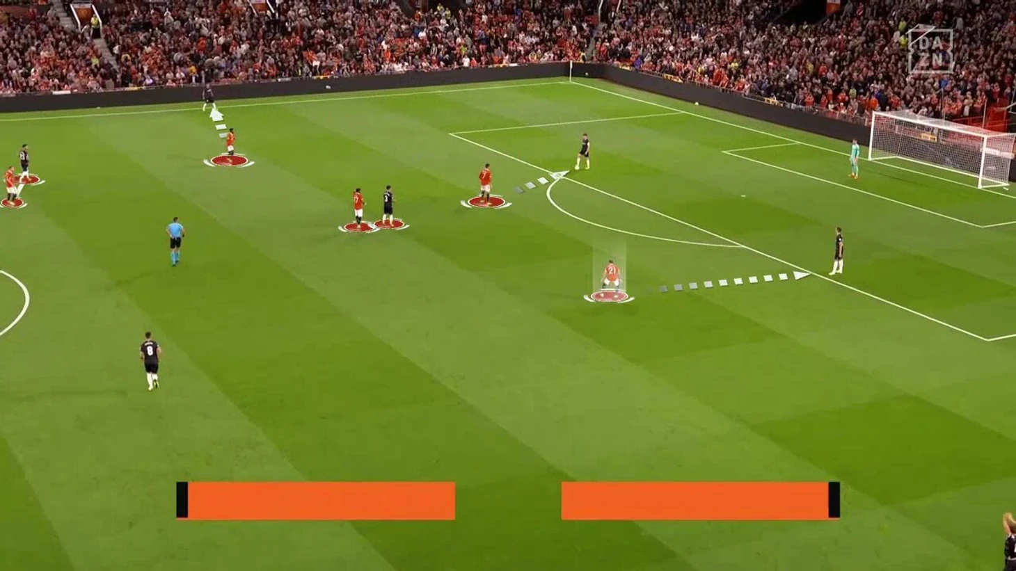 Структура Тен Хага ставит перед соперником выбор – либо уделить слишком много внимания Антони (и дать свободу другим), либо обеспечить ему удобные эпизоды 1-в-1 против защитника. В последнем сценарий его сдержать трудно – опасен на пространстве против оппонента, но при этом вариативен.