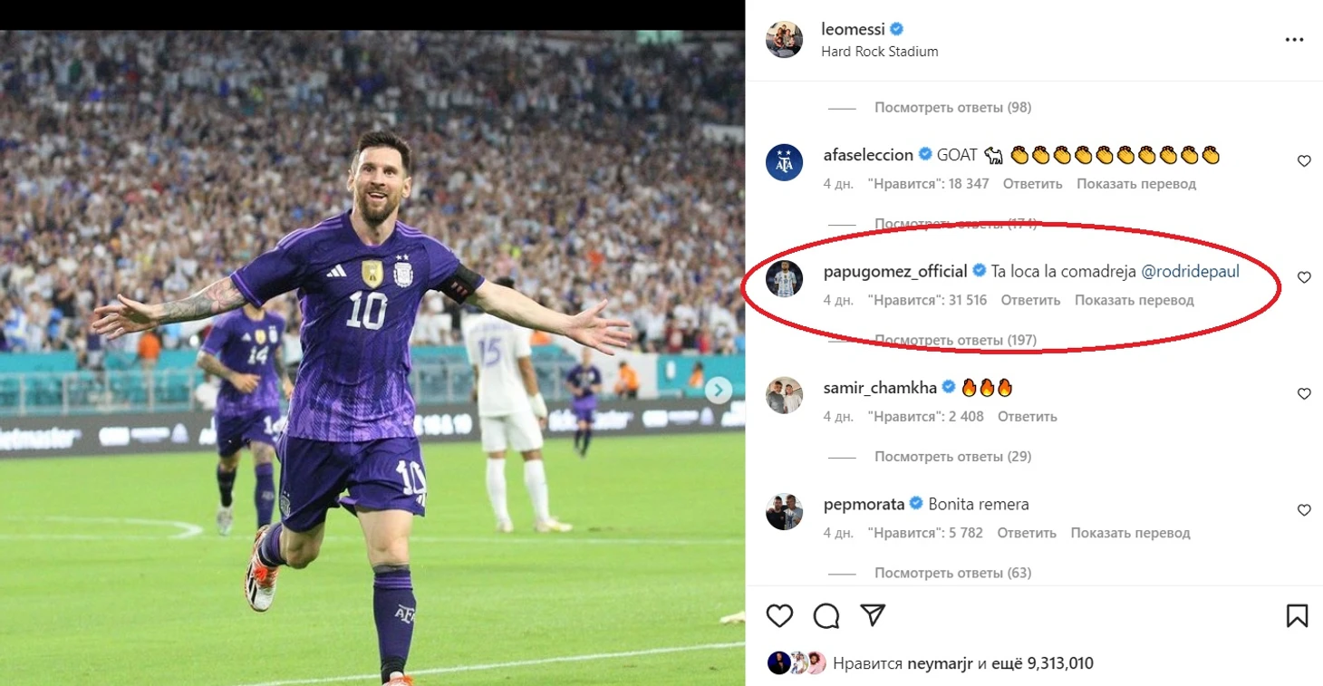 После дубля в ворота сборной Гондураса Месси опубликовал в соцсетях фото, а в комменты пришли Папу Гомес и Родриго де Пауль, которые назвали Месси лаской.