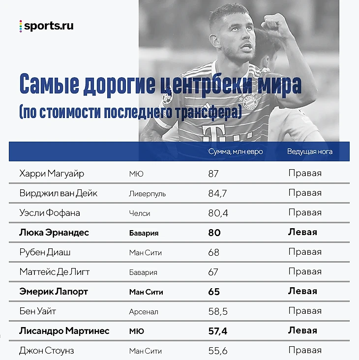 Лисандро обошелся «Юнайтед» в 57 миллионов евро. Для 175-сантиметрового центрбека – гигантская сумма. В начале сезона британцы соревновались в том, как небанальнее напророчить карманному защитнику провал, но тренер и рынок оценили его иначе. Мартинес вошел в десятку самых дорогих центрбеков планеты. Он стал третьим левшой в списке – после Лапорта и Люки Эрнандеса.