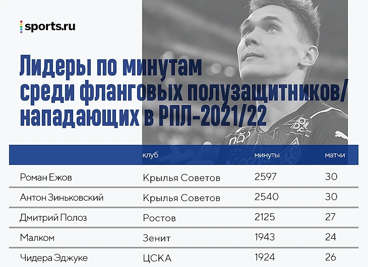Зиньковский получил третью желтую еще в 22-м туре, Ежов – в 25-м. Среди фланговых полузащитников/нападающих никто не играл больше в прошлом сезоне РПЛ.
