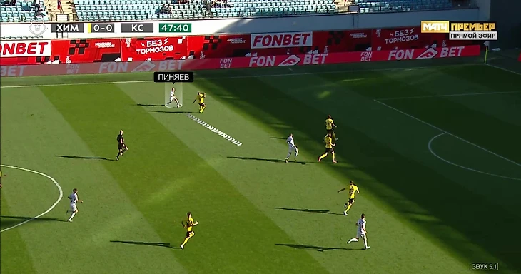 В прошлом сезоне у «Крыльев» были разноплановые фланговые полузащитники: Зиньковский чаще принимал в ноги и взаимодействовал с Горшковым, а Ежов – убегал за спину защитникам. После ухода Зиньковского и интеграции в основу Пиняева пока почти ничего не изменилось. Сергей тоже предпочитает либо делать пару шагов навстречу мячу, либо дожидаться его на месте. При этом кажется, что по скорости Пиняев подходит и под роль убегающего игрока – в перспективе возможен микс из качеств Зиньковского и Ежова хотя бы в части атаки.