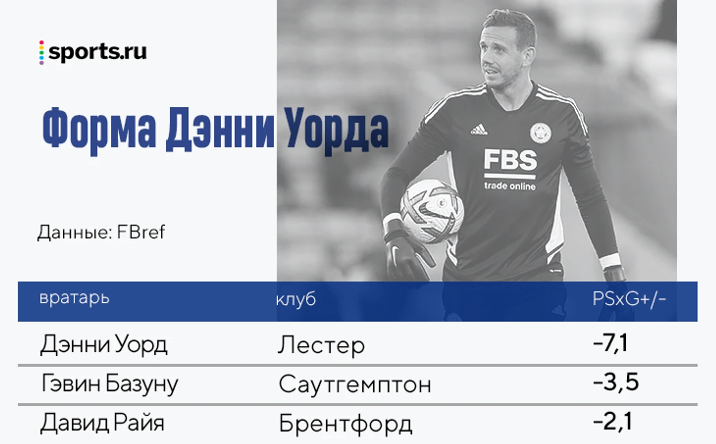 Для контекста: худший вратарь прошлого сезона в рамках этого показателя Иллан Мелье из «Лидса» за весь сезон выбил «-7,3». Да, форма Уорда может улучшиться и вряд ли он привезет -38 за сезон, но сейчас «Лестер» стартует со счета 0:1 из-за настолько вопиюще слабого кипера.