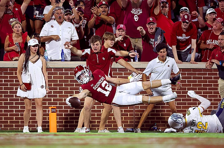 10 сентября. Лица болельщиков «Оклахомы» на студенческом американском футболе за мгновение до тачдауна.