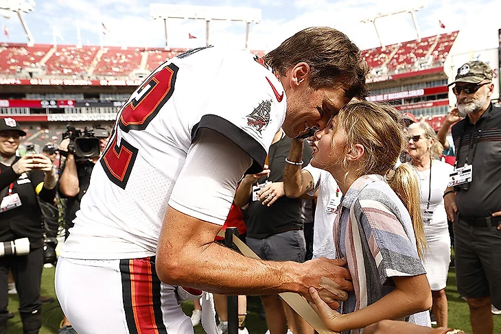 25 сентября. Величайший спортсмен США 45-летний Том Брэди с дочкой Вивиан перед очередным матчем. Брэди вернулся в спорт, хотя в феврале объявил о завершении карьеры. Жена квотербека бразильская супермодель Жизель Бюндхен недовольна, их брак под угрозой, но охота Брэди за восьмым Супербоулом уже началась.