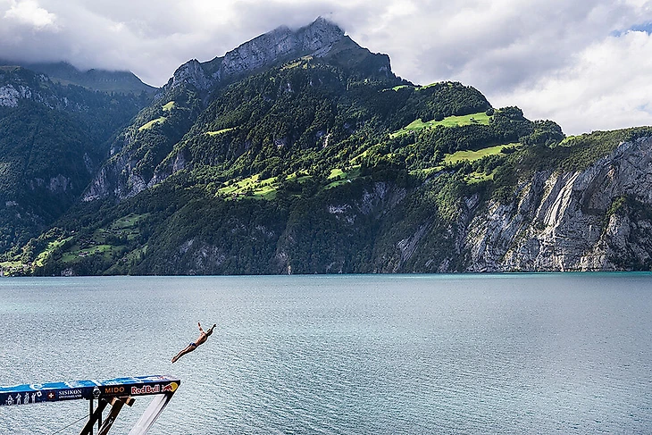 9 сентября. Клифф-дайверы Red Bull ныряют в Урнское озеро в Швейцарии.