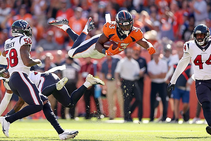 18 сентября. А здесь Джавонте Уильямс из «Денвера» эпично летит над полем в игре с «Хьюстоном».