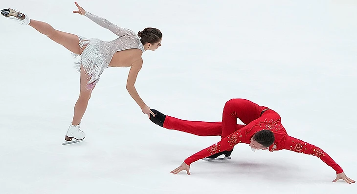25 сентября. Замысловатая фигура от Анастасии Мишиной и Александра Галлямова на контрольных прокатах фигуристов.