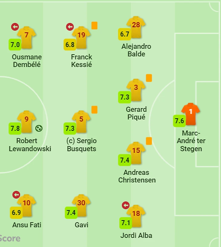 А вот какие оценки получили игроки «Барселоны» от ресурса Sofascore: