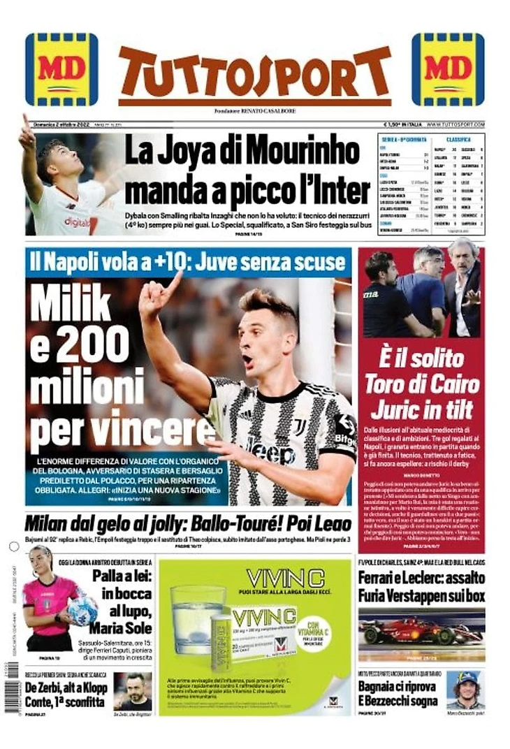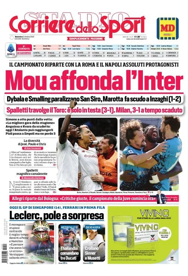 Моур потопил «Интер». Заголовки Gazzetta, TuttoSport и Corriere за 2 октября