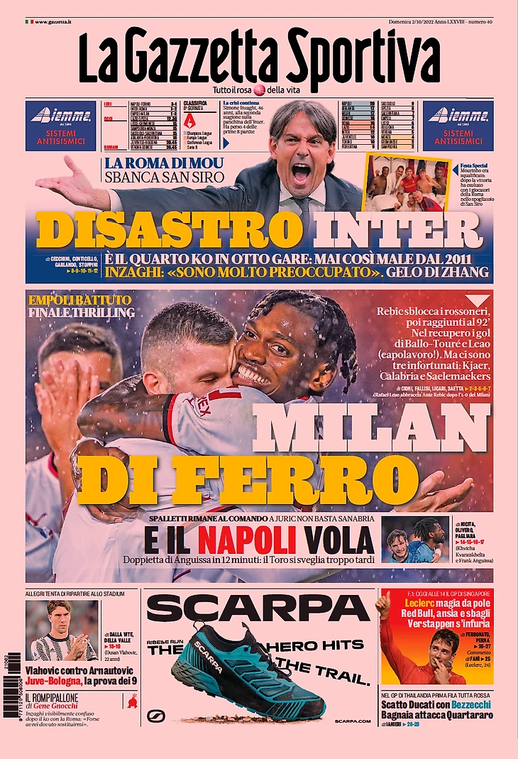 «Рома» Моура взяла «Сан Сиро». Это четвёртое поражение в восьми матчах: никогда не было так плохо с 2011. Индзаги: «Я очень опасаюсь». Мороз от Чжэна.