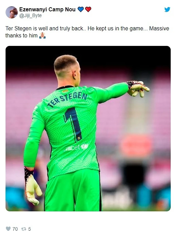 «Тер Стеген действительно вернулся. Он сохранил нас в игре. Большое ему спасибо».