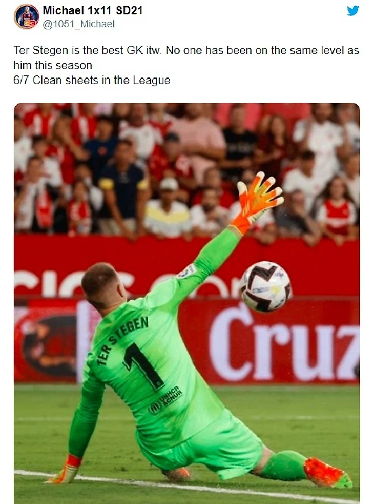 «Тер Стеген – лучший в мире. Ни один вратарь не показал тот же уровень, что и он в этом сезоне: 6/7 сухих матчей в Ла Лиге».