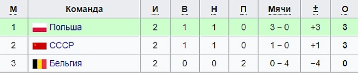 12 лучших команд 1-ого кругового раунда были ранжированы следующим образом: в квартете А сборная Союза билась за плей-офф с поляками, но, к сожалению, из-за трусости в атаке советские футболисты сложили свои полномочия и покинули Испанию.
