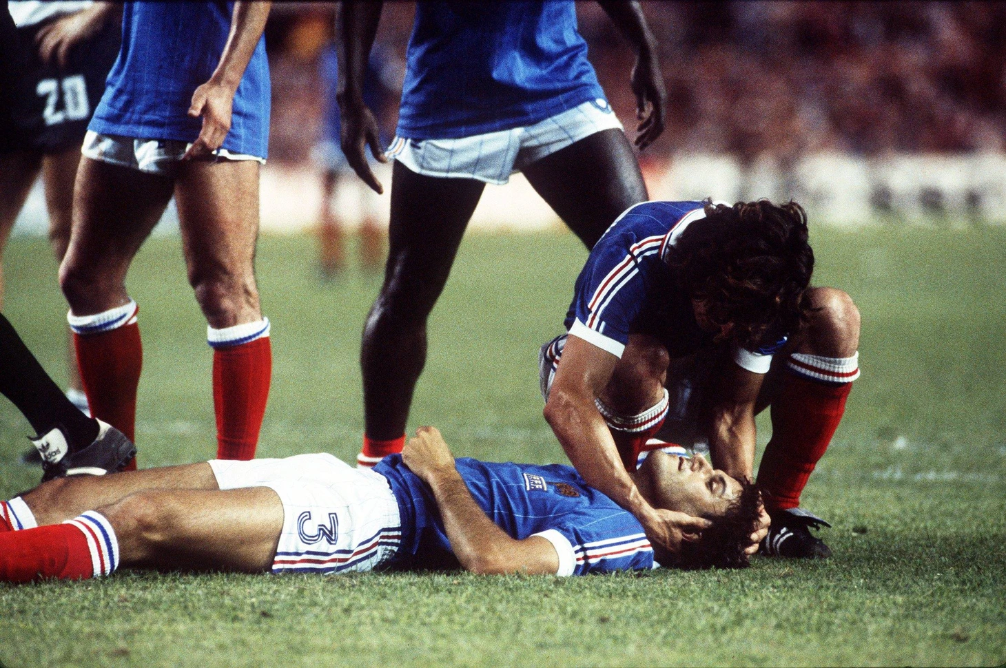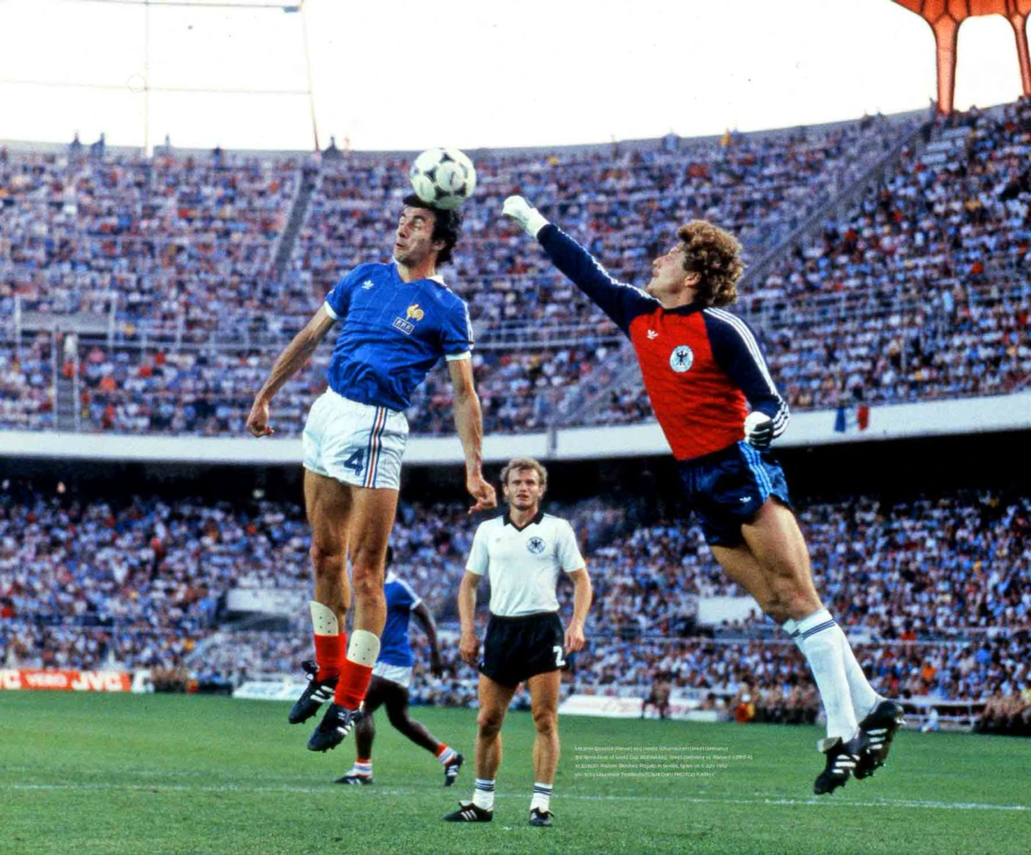 Однако, справедливости ради, вратарь «Бундестим» не такой уж и герой, его вообще не должно было быть в серии пенальти. Всё дело в том, что на 57-ой минуте встречи при выходе Патрика Баттистона 1 на 1 Шумахер намеренно с разбегу влетел в него всем телом. Француз получил тяжёлую черепно-мозговую травму, у него были выбиты три зуба и серьёзно пострадал позвоночник.