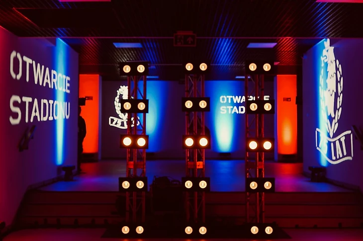 Стены залил сине-бордовый свет вместе с голограммами с изображением символики щецинского клуба и надписей "Открытие стадиона". Это очередной пример уникальности стадиона «Погони». В Польше еще никто такого не делал. Еще не известно, будет ли выглядеть так туннель на каждом матче щецинцев, пока что в клубе ведутся дискуссии на эту тему.