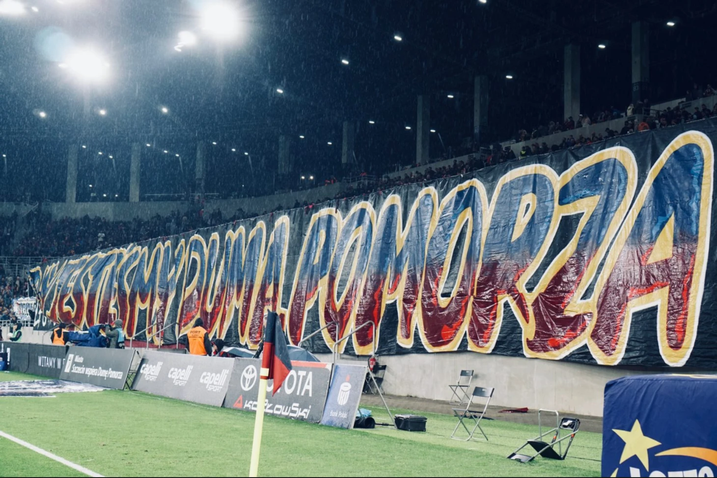 Футболисты выходят на газон в темноте, что создает особую атмосферу, световую иллюминацию можно было увидеть не только перед матчем, но и после каждого из голов щецинцев. Даже, когда смотришь матч по телевизору, заметна эта иллюминация. Хочешь увидеть радость футболиста, забившего гол, а на фоне обращаешь внимание на мерцания света. Немного клубов могут предложить своим болельщикам что-то подобное.
