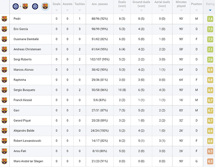 Худшим игроком матча можно назвать Марка-Андре тер Стегена. «Интер» не поставил вратарю неразрешимых задач, а дальний удар Чалханоглу хоть и был довольно сложный из-за скопления игроков в штрафной, но нельзя назвать не берущимся.