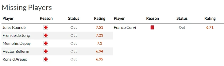 Но это все перспективные планы, а в суровом настоящем у каталонцев на носу важнейшая ответка против Интера и полная авоська травмированных, куда после выезда в Италию добавились ещё и Кессиэ(6,5) с Кристенсеном(6).