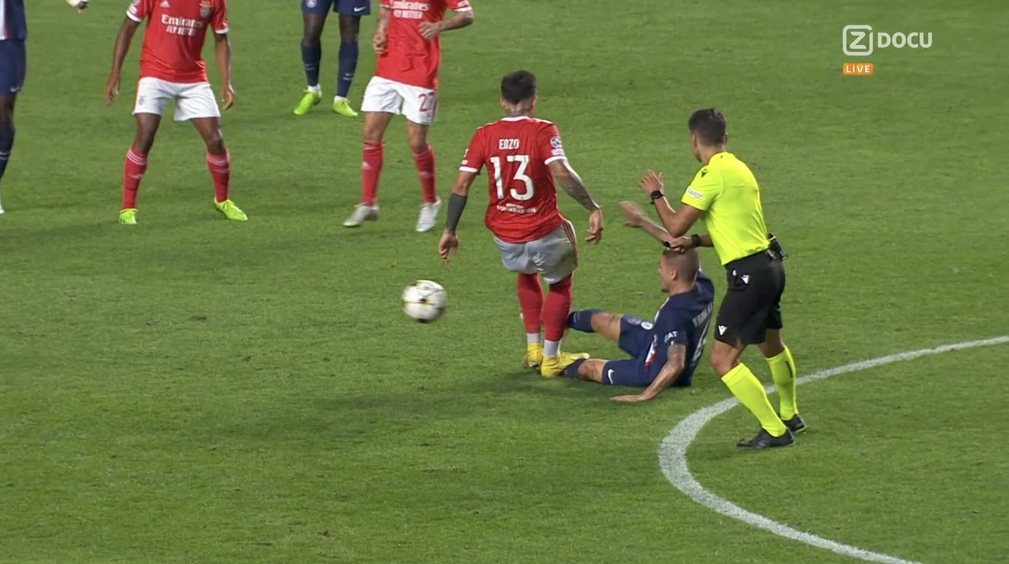 В матче «Бенфика» — «ПСЖ» полузащитник португальской команды Энцо Фернандес получил желтую карточку за то, что буквально чуть не раздавил ногу Верратти. Это выглядело очень опасно и точно могло привести к серьезной травме.