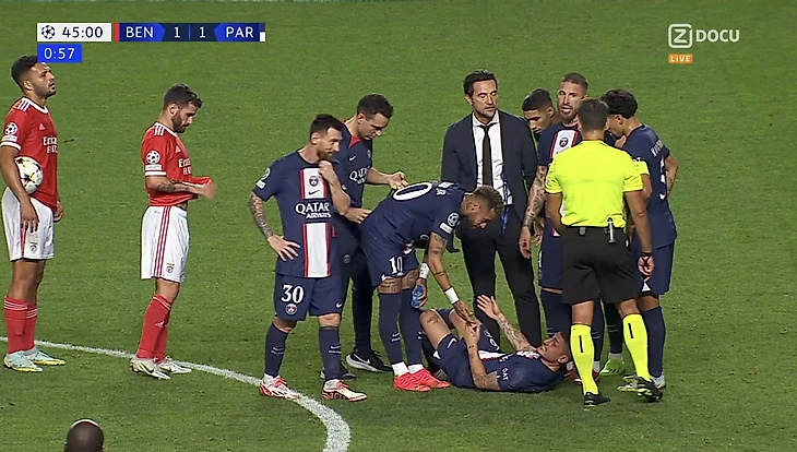 Болельщики парижан не понимают, почему игрок «Бенфики» отделался только предупреждением, ведь он вполне заслужил удаление: