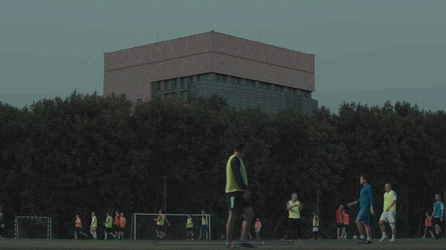 Здорово, что получилось именно кино, а не набор интервью. За картинкой хотелось наблюдать, не было желания включить запись фоном в качестве подкаста, иногда подсматривая имена спикеров. Парни, гоняющие мяч среди новостроек, камера, бегущая за гусями и даже графические вставки чем-то напоминающие интро к кондовой «Иронии судьбы» – такие мелочи заставляют пристально следить за действиями на экране.