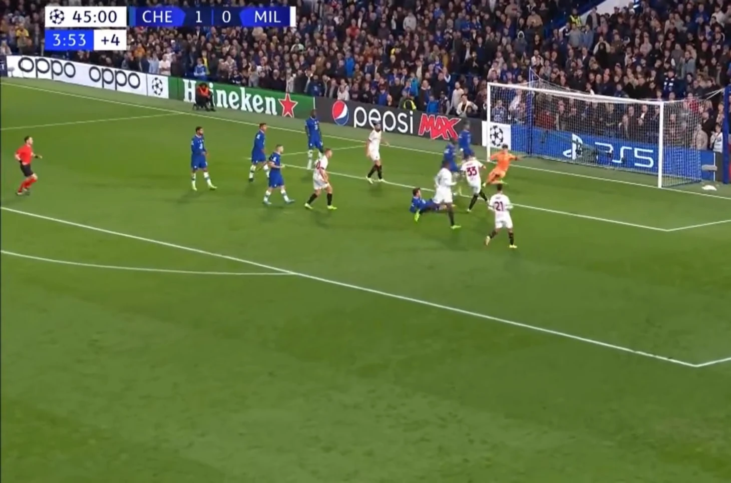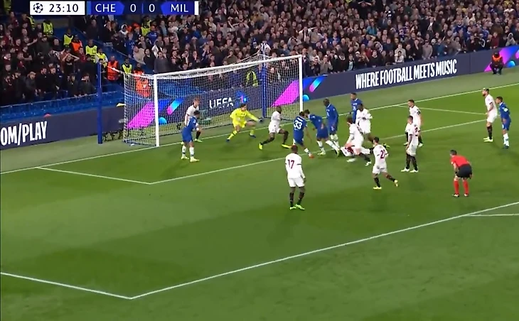 Прекрасный момент, характеризующий Милан как команду, произошел на 24ой минуте. Четыре игрока Челси пытались запихать мяч в ворота, пока всего два игрока Милана пытались им помешать. Для остальных 7 это было красивым зрелищем, за которым можно понаблюдать и со стороны.
