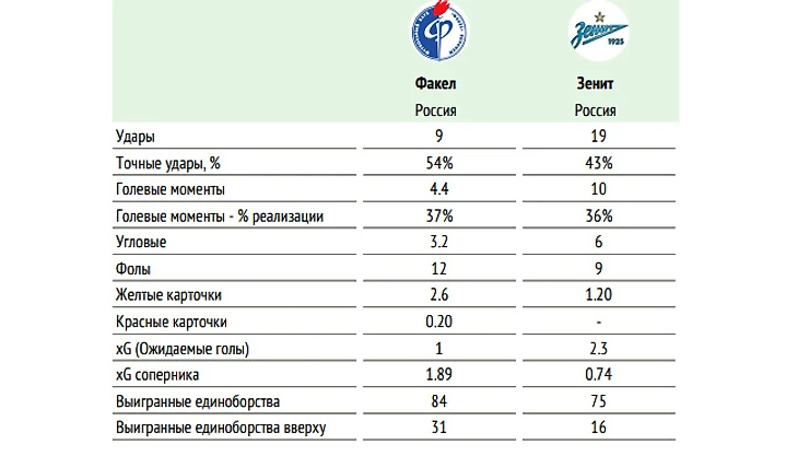 🕮 Факты: ◉ «Зенит» - единственная команда РПЛ, еще не проигрывавшая в этом сезоне. ◉ «Зенит» выиграл семь матчей подряд. ◉ «Зенит» на протяжении 30 лет не проигрывал в Воронеже в официальных матчах – с 25 октября 1992 года. Правда, и провел за это время на поле «Факела» всего четыре поединка. ◉ «Факел» - самая миролюбивая команда нынешнего чемпионата: из 11 сыгранных матчей он шесть завершил вничью.