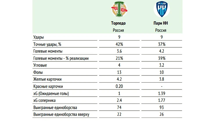 🕮 Факты: ◉ «Торпедо» - аутсайдер чемпионата по всем основным показателям. У него меньше всего побед, меньше всего очков, меньше всего забитых мячей и больше всего мячей пропущенных. ◉ «Торпедо» и «Пари НН» встречались в российской истории всего четыре раза, и все четыре раза побеждали нижегородцы. ◉ «Пари НН» два предыдущих матча в чемпионате России проиграл.