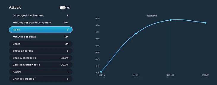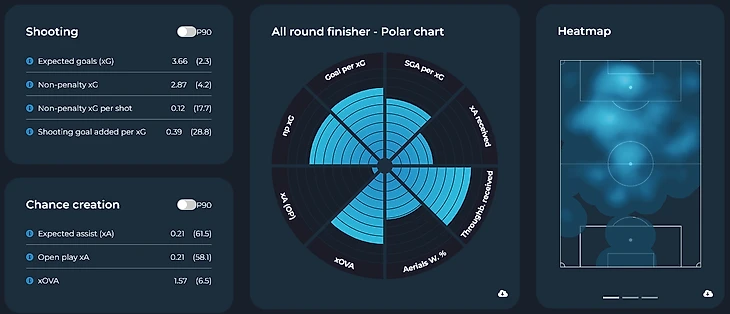Являясь зависимым форвардом, Душан редко опускается в центр поля, предпочитая работать по штрафной площади и не включаться в прессинг. При этом Влахович идеально чувствует момент и если на него идет передача, он с высокой долей вероятности конвертирует ее в опасный момент, поэтому Милан будет активно работать по сербу и подключать сразу несколько игроков для закрытия коридоров. Отсюда нужда в Костиче, который прекрасно сыгрался с Влаховичем и все чаще находит его передачей даже в самых сложных ситуациях. По критерию оценок ожидаемых голов в данный момент серб располагается в Серии А на 9 месте - сказывается расточительность, присущая всей команде.