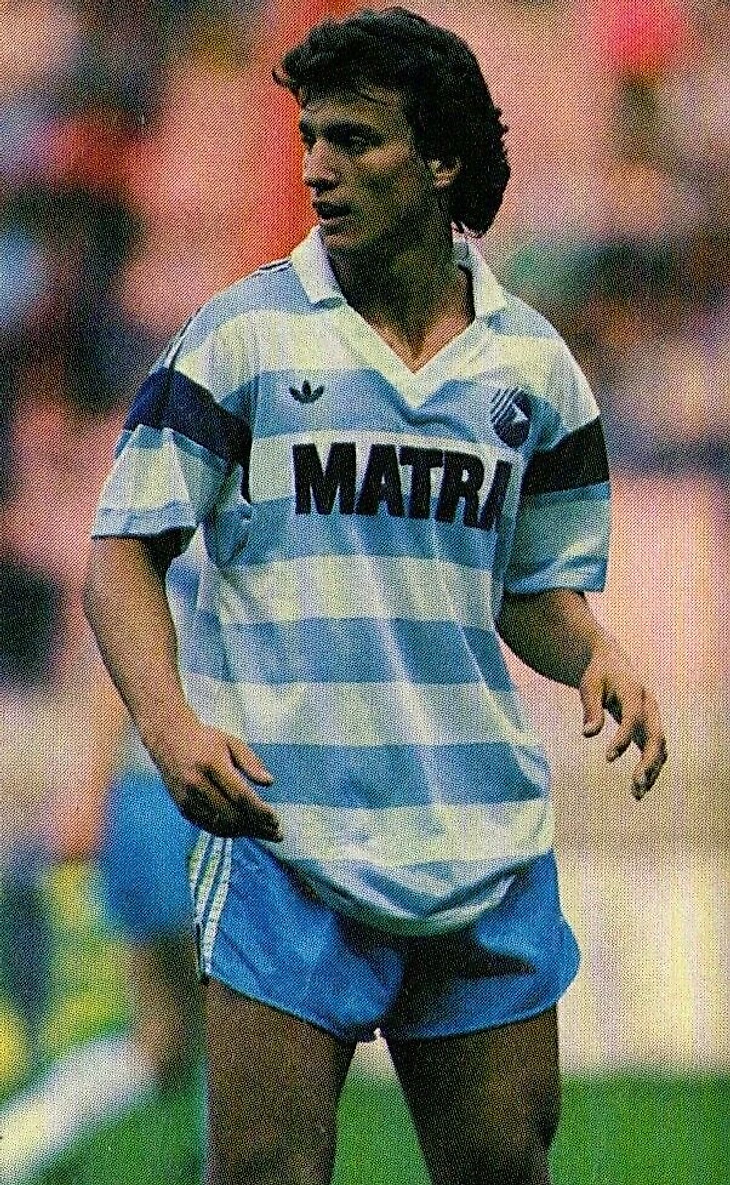 Обратите внимание, визитной карточкой Матры стал не кто либо из знаменитых (сейчас или в будущем) креативщиков клуба, а квартет трудяг, гениев разрушения. Вот алжирец Бен Мабрук. На Мундиале-86 он мало чем выделялся индивидуально, но при этом играл в линии, которая в первом тайме в матче с одной из лучших команд турнира, Бразилией, сумела выравнять игру и навязать ей в целом равную борьбу. О нем, футболисте неярком, но надежном, говорит тот факт, что он присутствовал в рядах Рэсинга весь период президенства Лагардера. Или Филипп Маю. Я практически ничего не помню из его индивидуальных подвигов, кроме того, что он обладал очень важной, ключевой для его клубных тренеров, характеристикой- стабильностью, с планкой уровня игры, никогда не опускавшейся ниже среднего. А еще они иногда совершали подвиги впереди: гол Фернандеса принес победу над Ниццей, гол Маю стал единственным в матче против Лаваля, гол Бен Мабрука проштемпелевал победу над Мецем.