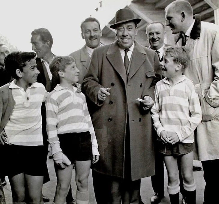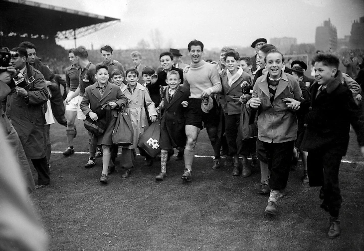 Ностальгия по былым временам...Одним из самых преданных поклонников Рэсинга Пари был знаменитый комик и актёр Фернандель (здесь он в окружении молодой поросли столичного клуба)