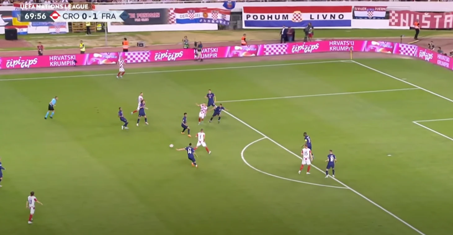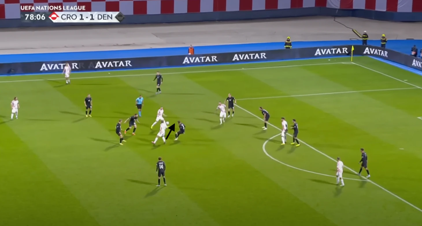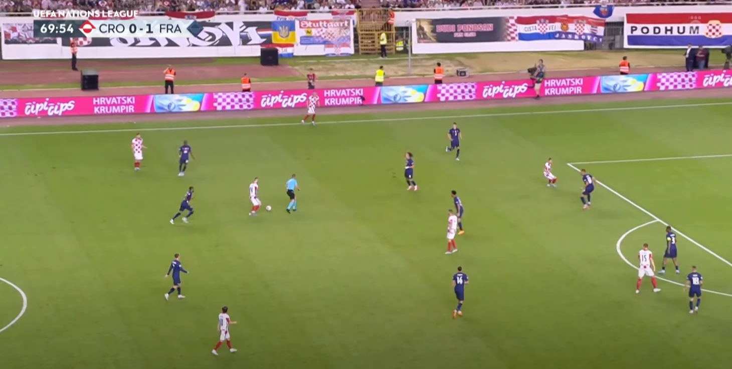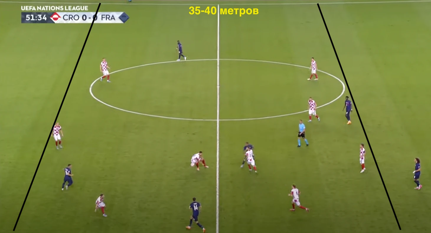 Хорваты очень компактно играют в средней зоне. Полагаю, что они компенсируют недостаток скорости более узкой расстановкой, чтобы уменьшить шансы соперника на быструю атаку, а также иметь больше возможностей для подстраховки.