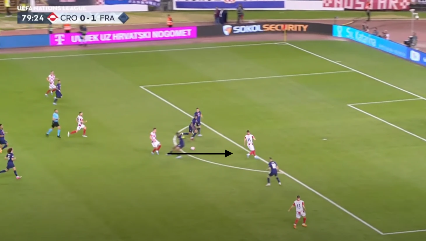 Еще пример прекрасного взаимодействия хорватов – длинная передача, создавшая острейшую ситуацию. Не забывайте, что в соперниках действующие чемпионы мира.