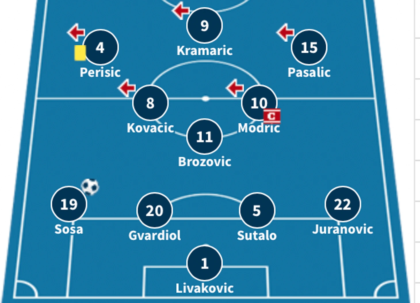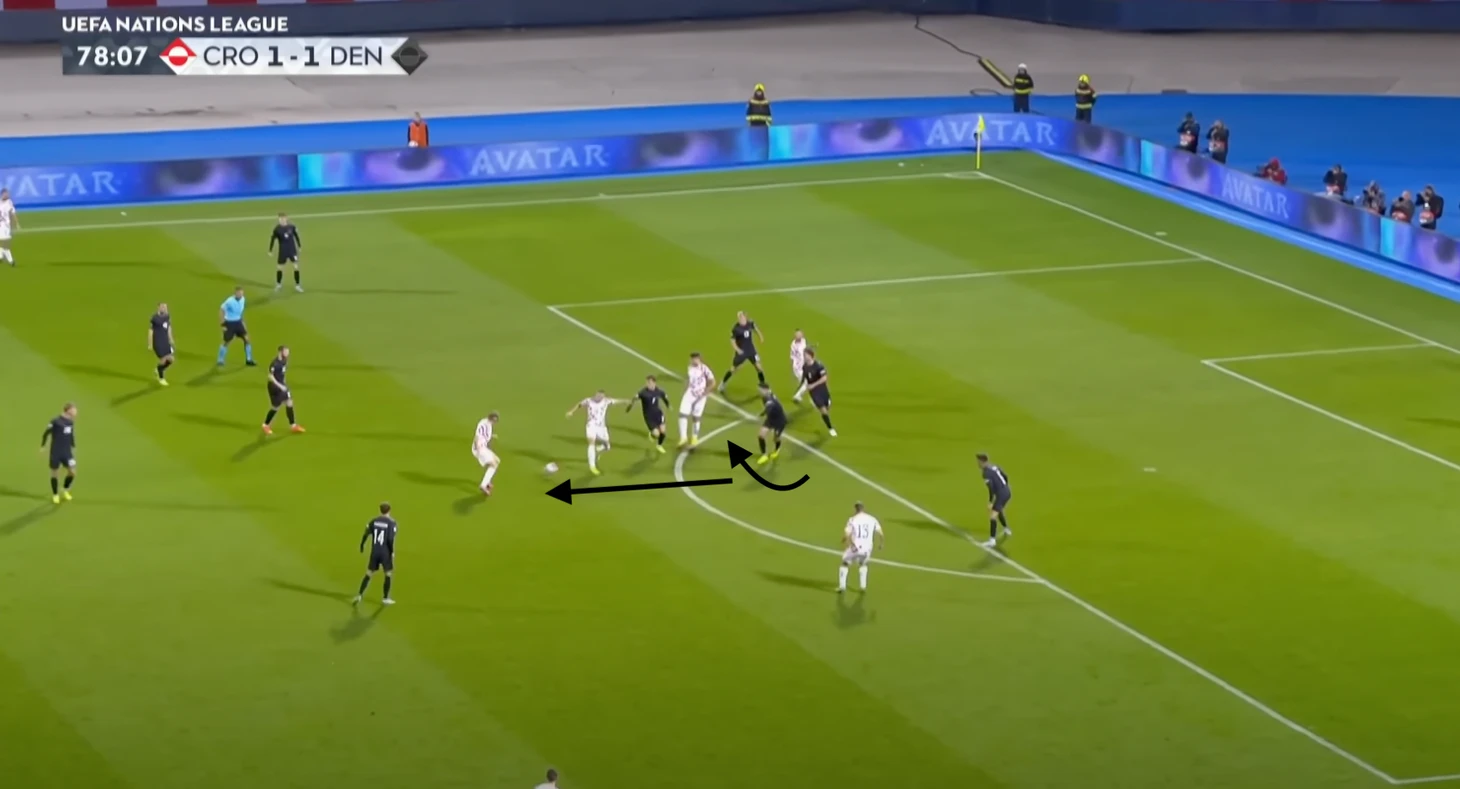 Хорваты очень хорошо атакуют через центральную зону – Брозович и Ковачич умеют находить подходящий момент, чтобы подключиться к атаке, а Перишич прекрасно его создает.