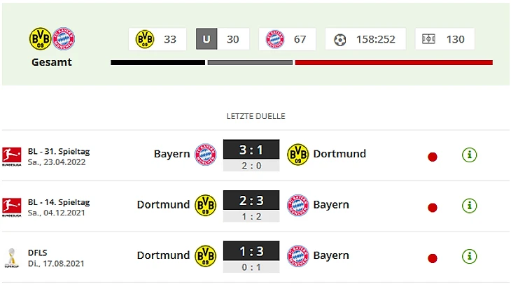 - «Бавария» забила в этом сезоне более чем в два раза больше голов (23), чем «Боруссия» (11). Дортмунд одержал четыре из пяти побед со счетом 1:0. С другой стороны, «Бавария» всегда выигрывала как минимум с разницей в два гола.