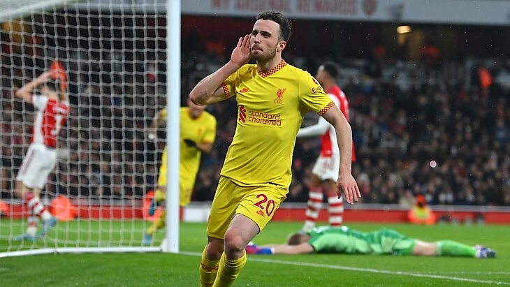 Диого Жота забил 6 голов в 8 матчах АПЛ против Арсенала, 5 мячей в 4 играх в составе Ливерпуля.