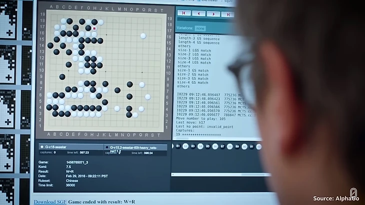 Го — древняя китайская настольная игра, это невероятно сложная игра с невероятно большим количеством ходов, про нее говорят что в ней ходов больше, чем атомов во Вселенной. Это означает, что компьютер не может просчитать все возможные ходы, а затем просто выбрать лучший. В компьютерном мире недостаточно вычислительной мощности для этого. Для этого можно посмотреть, как AlphaGo учится играть в Го, сыграв 100 игр, система едва знает, как в нее играть, но после 600 игр искуственный интеллект находит наилучшую стратегию. Искуственный интеллект общего назначения учится играть в игру, имитируя процесс обучения человеческого мозга.