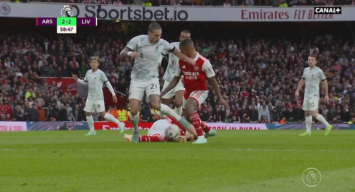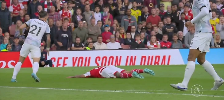 Во время одного из эпизодов игры «Арсенала» и «Ливерпуля» на газоне оказался Мартин Эдегор. Майкл Оливер игру продолжил, что явно разозлило канониров. Мяч оказался у Букайо Сака, который скинул его на Габриэла Жезуса. В борьбу с ним вступил защитник Константинос Цимикас и бразилец внезапно оказался на газоне. Футболисты обеих команд окружили форварда «Арсенала», который находился без сознания. Они активно жестикулировали, чтобы на поле появилась медицинская бригада.