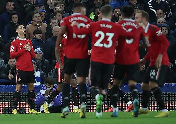 Криштиану Роналду наконец-то забил в АПЛ – только в 10-м туре! Португалец остался в запасе на матч против «Эвертона», но экстренно поднялся со скамейки из-за травмы Антони Марсьяля. Роналду вышел на 29-й минуте и забил в самом конце тайма – сделал счет 2:1 в пользу «МЮ» после ассиста Каземиро.