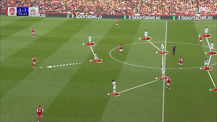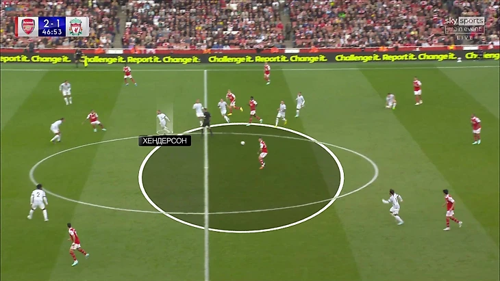 Хендерсон в такие моменты регулярно бросался на мяч без оценки ситуации, чем оголял другие зоны. Тиаго в принципе не так мобилен – основной объем работы без мяча должен был прийтись на Хендо. В результате «Арсеналу» было проще доставлять мяч на Мартинелли, который решал в таких эпизодах.