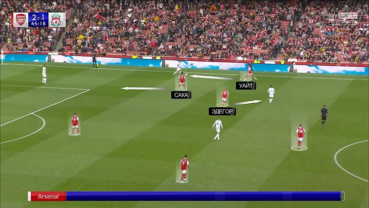 По своим меркам ВВД получал неприлично много времени на поиск вариантов. Если на него выдвигался Сака, по цепочке свободу получал Тиаго. Закрыть это направление у «Арсенала» не получалось. В результате «Ливерпуль» наращивал давление.