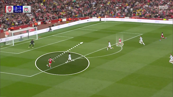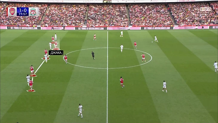 Плюс от использования правши против игрока типажа Салаха очевиден (при прочих равных проще перекрыть направление для смещения в центр). Минус – менее эффективные подключения в атаку. Но «Арсенал» учел это и адаптировался – при розыгрышах (даже в первом тайме) Томиясу оставался дополнительным центральным защитником. Хорошая ставка Артеты.