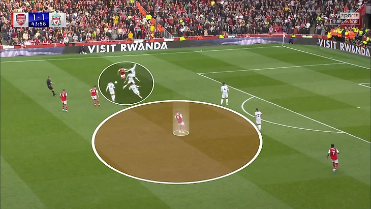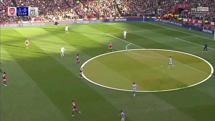 7. После быстрого пропущенного «Ливерпуль» захватил контроль до конца первого тайма. Ключевая причина – свобода, которую получал Вирджил ван Дейк в первой стадии. «Арсенал» располагался в позиции для прессинга, но испытывал серьезные проблемы с давлением в зоне Ван Дейка/Тиаго.